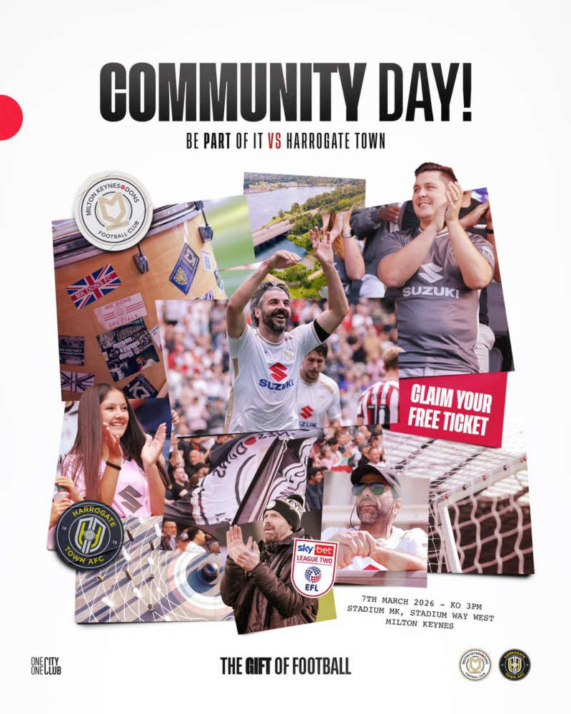 Everyone who lives in Milton Keynes knows just how special and unique the city is, and while an initiative of this nature is out of the ordinary, we believe the people of Milton Keynes will genuinely appreciate the club opening its doors and inviting everyone in for the EFL League Two fixture vs Harrogate Town on Saturday, 7th March.